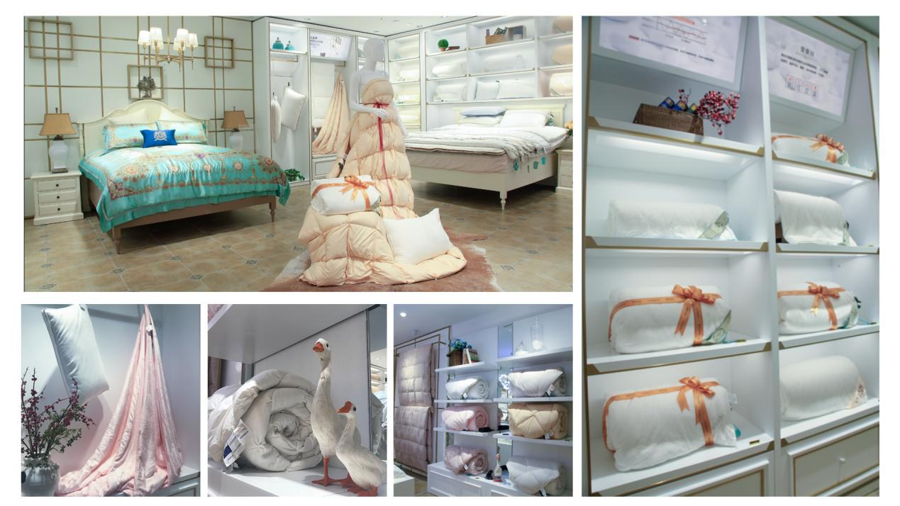 芯類產(chǎn)品一直以來都是家紡行業(yè)銷售的大頭,為進一步提高和義店芯類產(chǎn)品銷售業(yè)績,公司特意對一樓原有空間進行重新規(guī)劃,開辟了一塊80余平的獨立芯類區(qū),芯設(shè)計上采用白色貨柜、鍍鈦金屬件、金屬玻璃柜的組合,讓整個芯類區(qū)更加通透明亮。維科家紡主打的維科朵絨被、蠶絲被、石墨烯纖維被等都將在該區(qū)域以展床、垂掛、卷筒等不同形式進行集中展示。此外,售價近三十萬的鎮(zhèn)店之寶——至尊冰島雁鴨絨被,也首次亮相和義店。