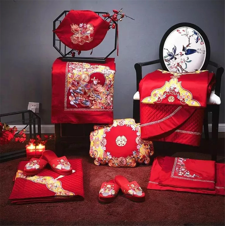 嫁妝是女方身份、財勢的象征,在傳統(tǒng)的婚嫁習(xí)俗,婚慶床品是女方必備的嫁妝之一,因此很多地區(qū)在選購婚慶床品時會選擇數(shù)量在六至十套,甚至更多。