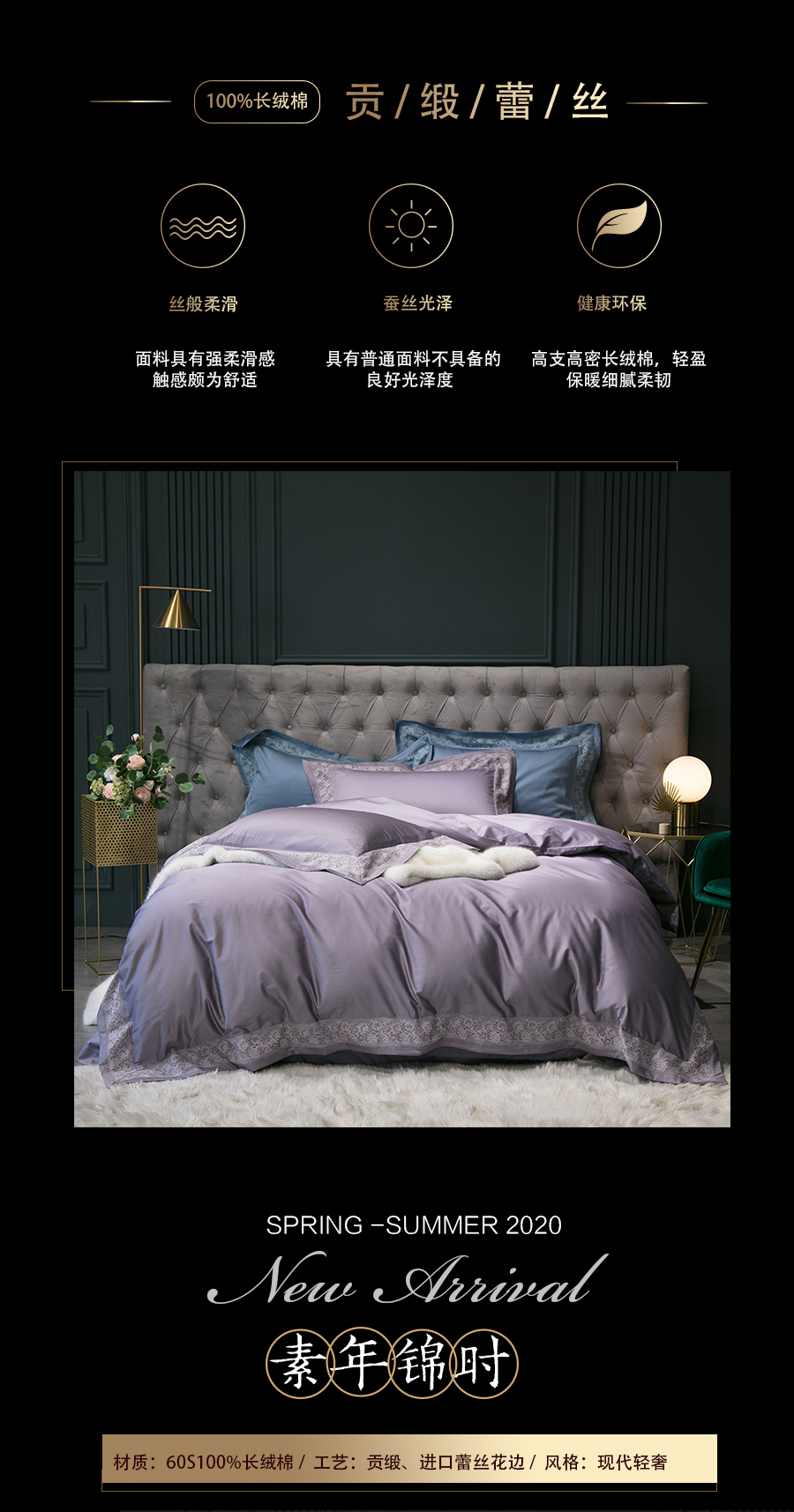 新品鑒賞 | 60S植物真絲貢緞四件套-素年錦時