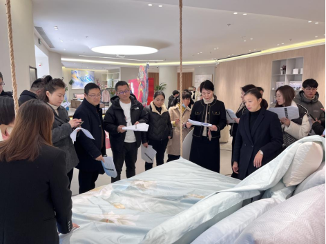 次日,作為發布會現場的維科家紡和義店異常火爆,各個區域都吸引了大量參會者的關注和參觀,通過工作人員的展陳氛圍烘托、床品展示、接待講解等服務,加盟商更直觀地了解維科家紡不同系列產品的特色,并對新一季產品贊許連連。